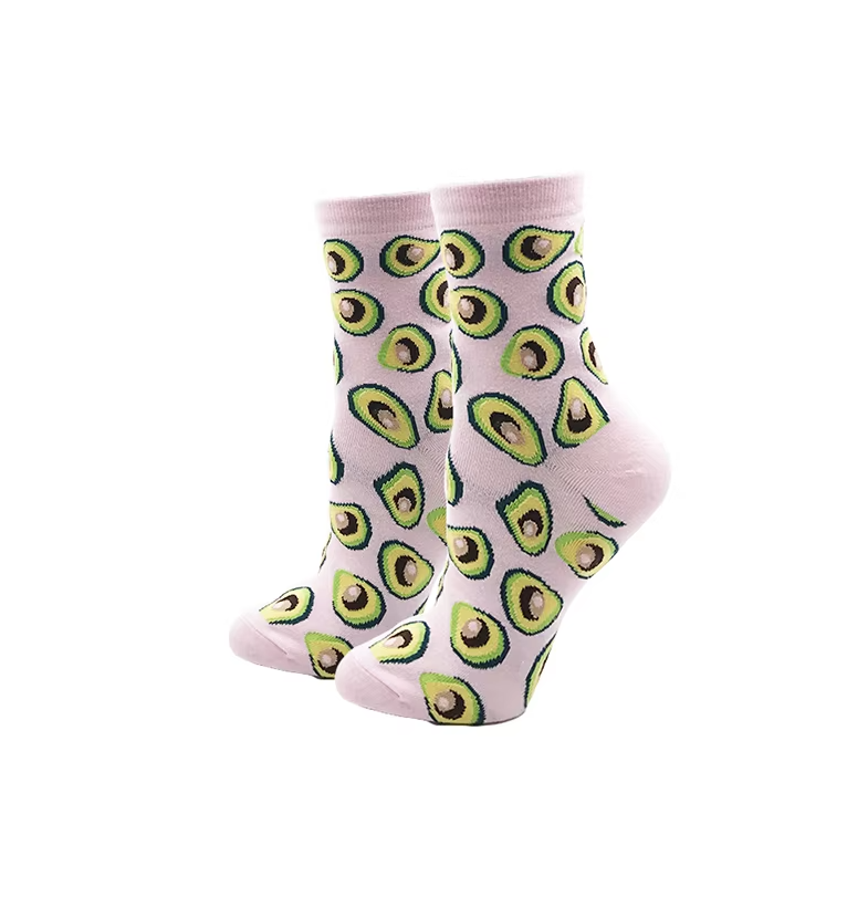 Rosa sokker med motiv av avocado. Sokkene er myke og behagelige, og passer til enhver anledning.