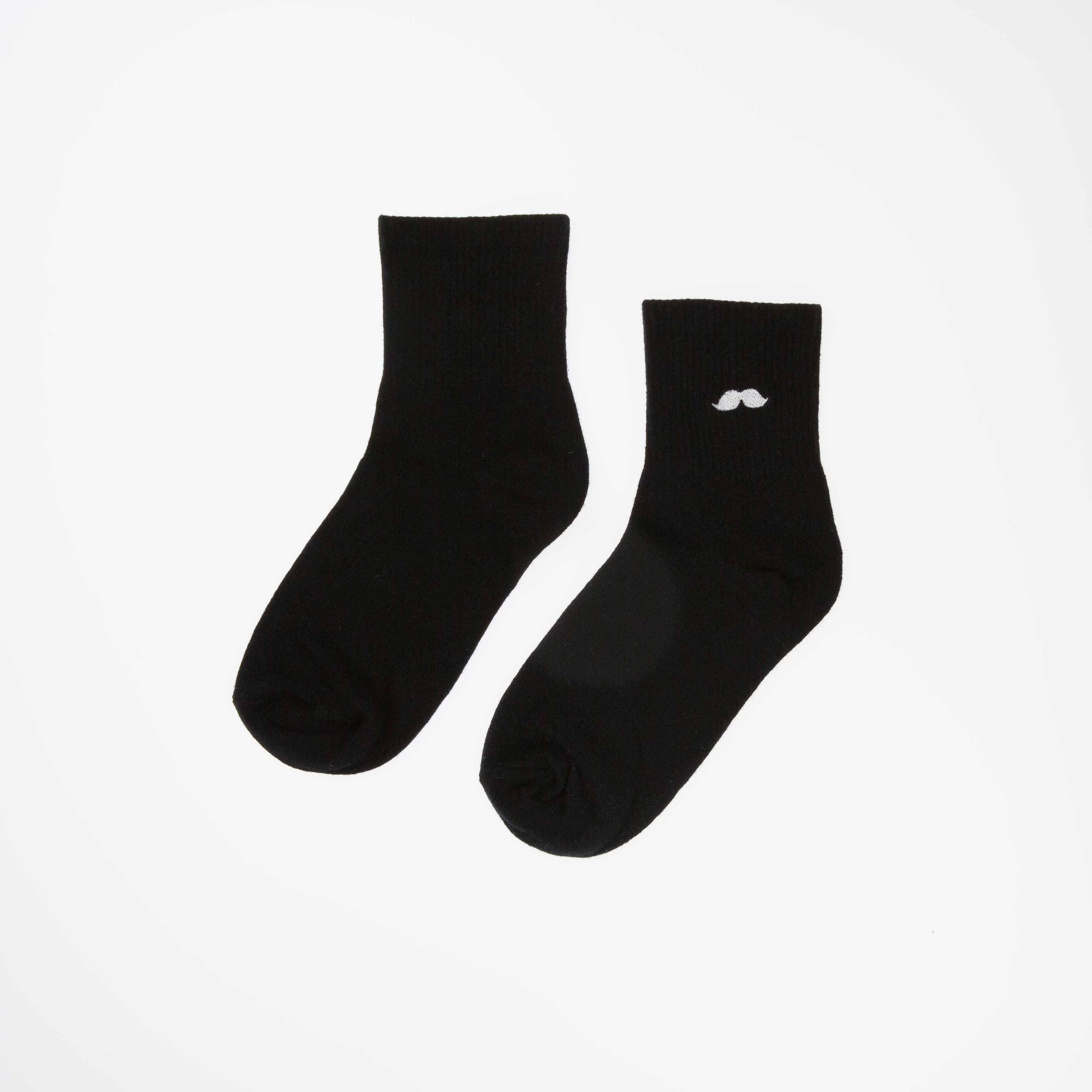 Svarte sokker med motiv av en bart. Sokkene er myke og behagelige, og passer til enhver anledning.