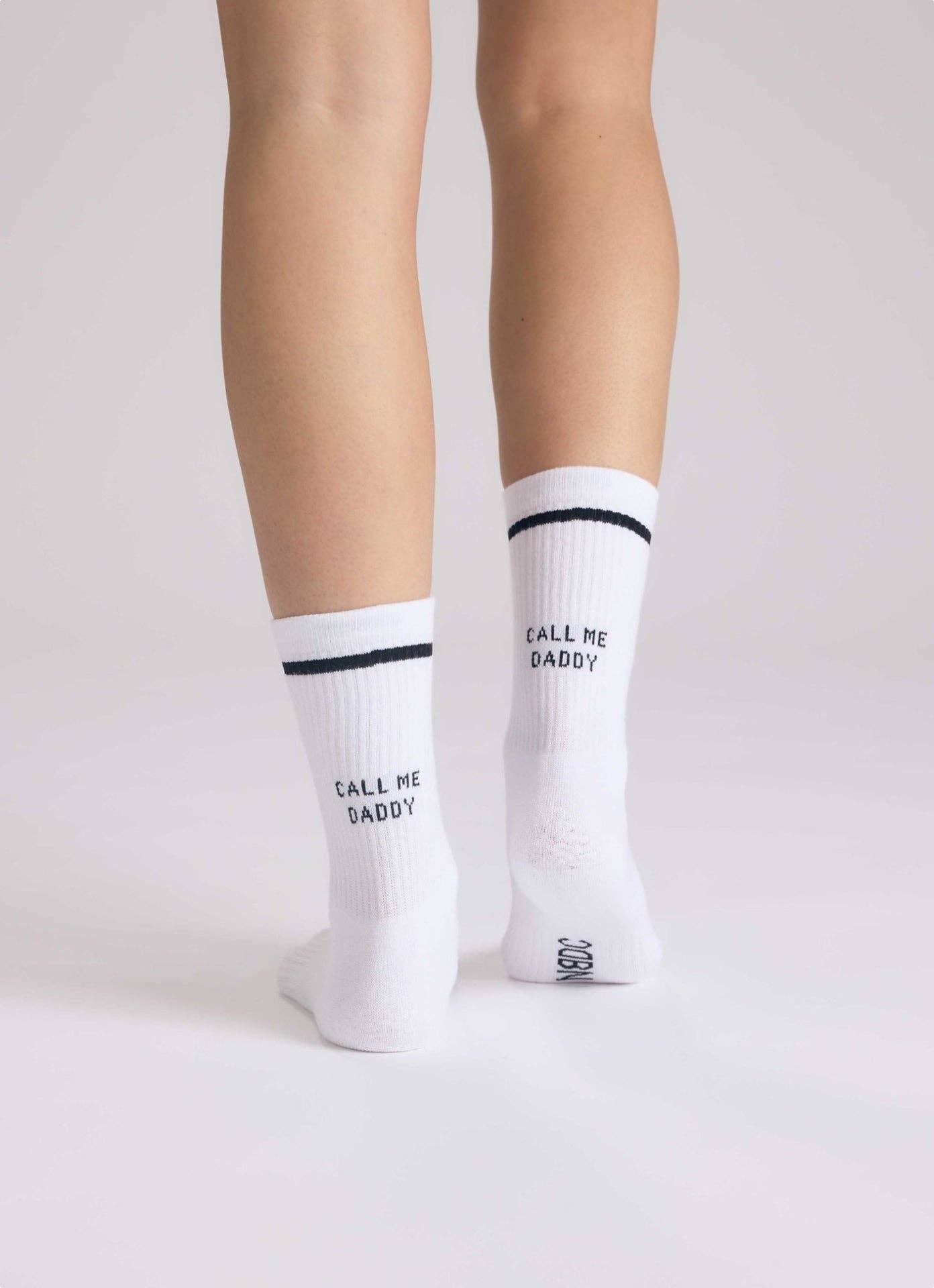 Selvsikker med et glimt i øyet, akkurat sånn er Call me daddy-sokkene. Med tydelig tekst på klassiske hvite tennissokker, er dette sokker som sier mye uten å heve stemmen. Perfekte for deg som liker en leken, selvsikker stil, og ikke er redd for å skape litt god stemning. Sokkene er produsert i Portugal, og er laget av myk, økologisk bomull for høy komfort hele dagen.
