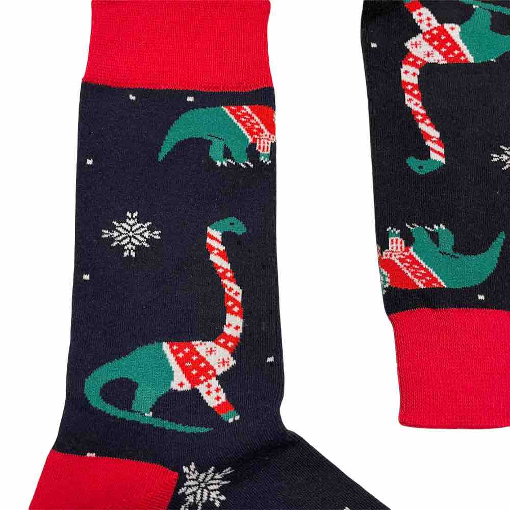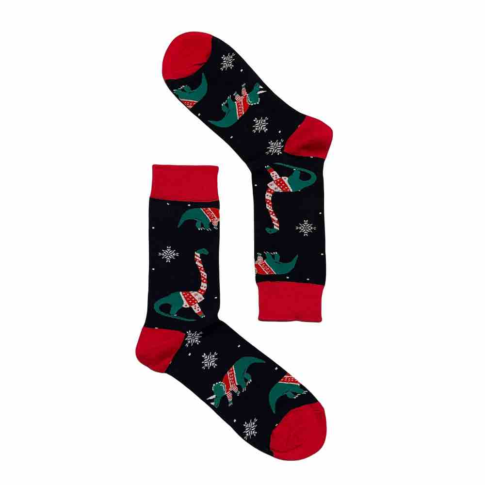 Dinosaur med julegenser! Morsomme, fargerike og deilige julesokker fra Sokkbuddy!