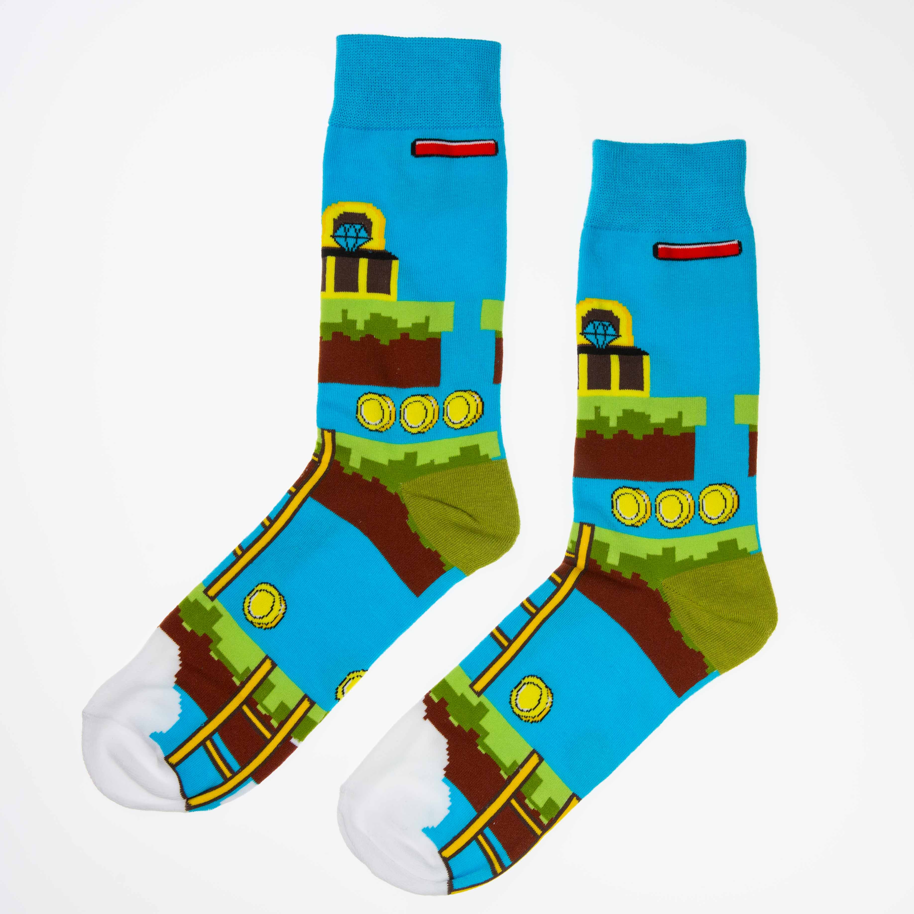 Lyseblå sokker med motiv av et kjent gamingunivers. Sokkene er myke og behagelige, og passer til enhver anledning.