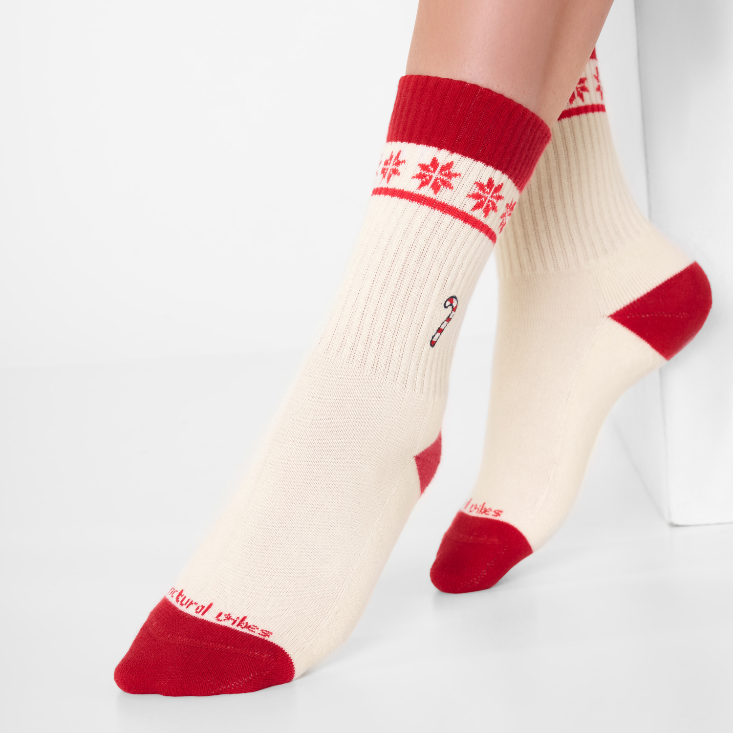 Natural Vibes komfortable crew-sokker i økologisk bomull kommer med både broderi og julemønster – pakket i en kul gaveeske.
