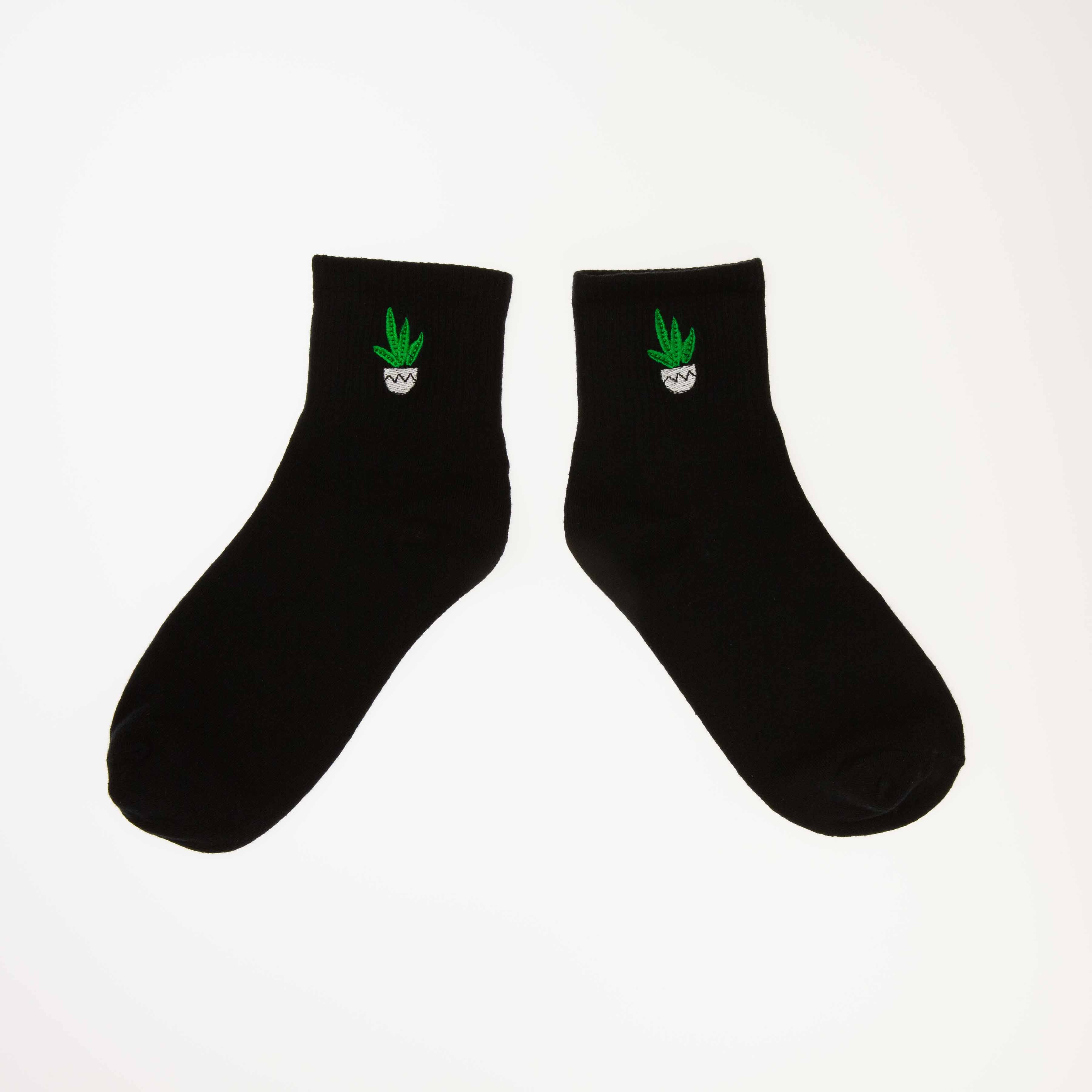 Svarte sokker med motiv av en kaktus. Sokkene er myke og behagelige, og passer til enhver anledning.