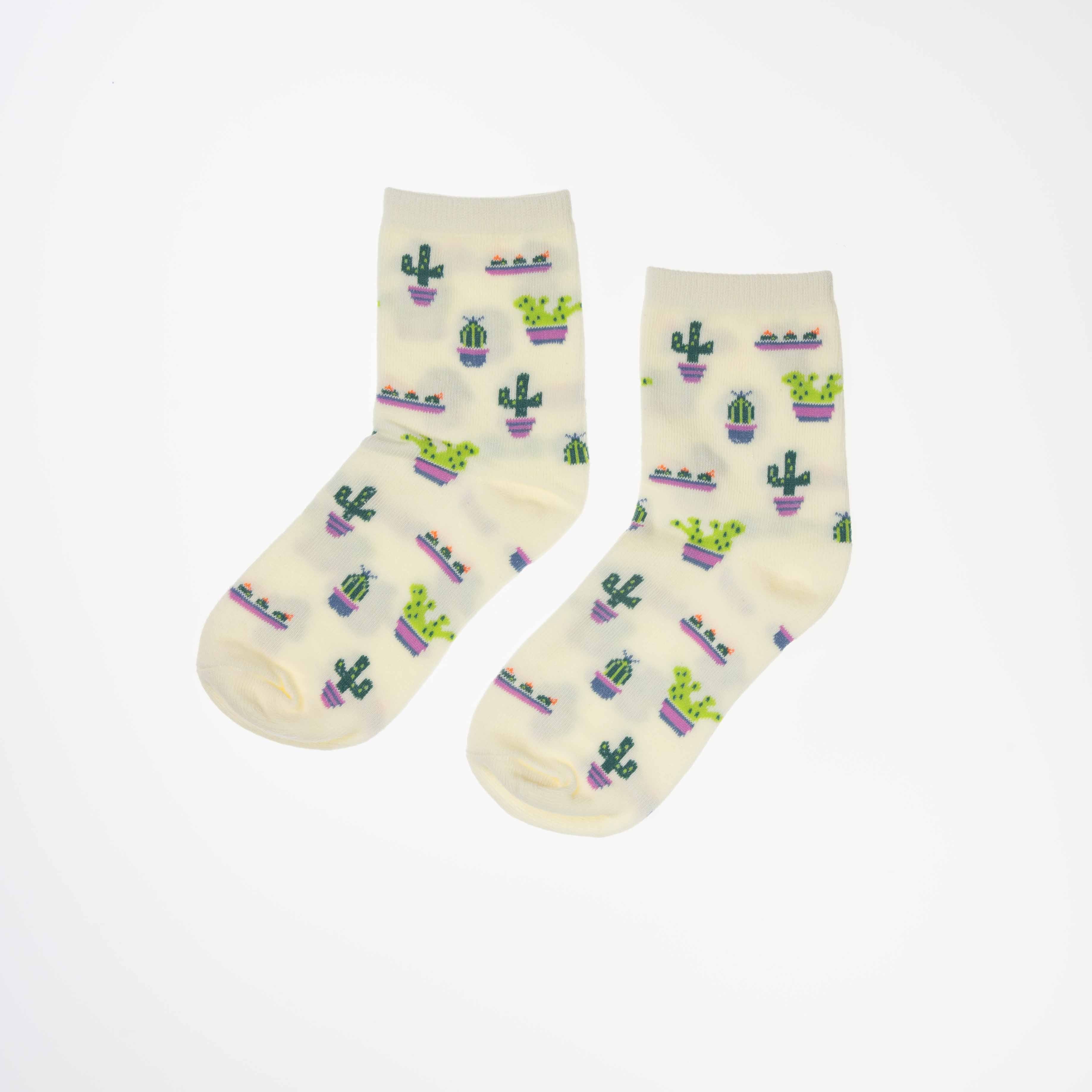 Hvite sokker med motiv av kaktuser. Sokkene er myke og behagelige, og passer til enhver anledning.
