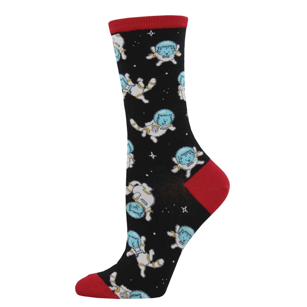Klar for å bli med på et smågal katte-eventyr? “Kattstronaut”-sokkene sender både føttene og humøret ditt ut i galaksen! Her får du sorte sokker med røde detaljer, fulle av katter som suser rundt i romdrakter – perfekt for deg som elsker både katter og kosmos (og kanskje å dagdrømme litt på jobb).