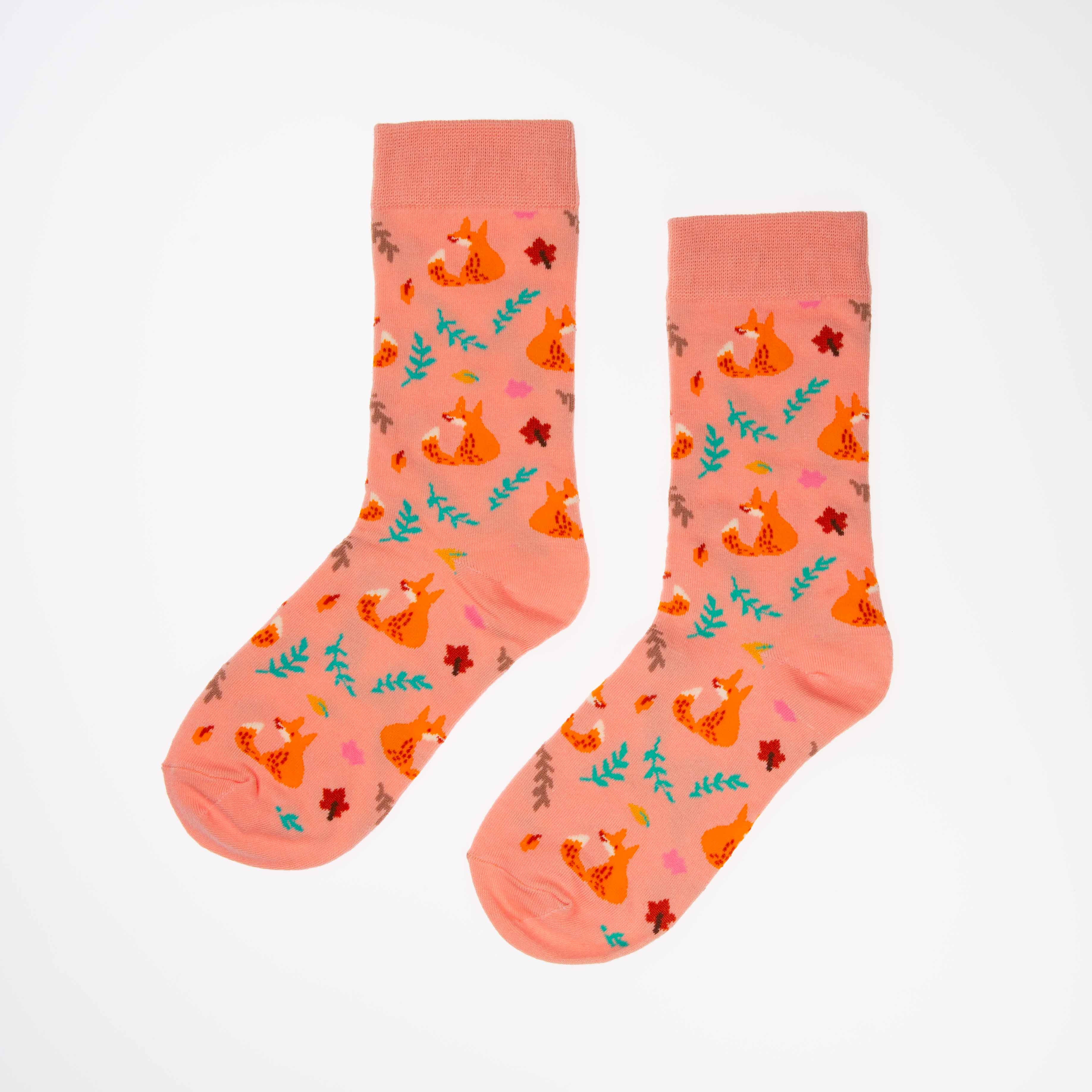 Ferskenfarget sokker med motiv av rev. Sokkene er myke og behagelige, og passer til enhver anledning.