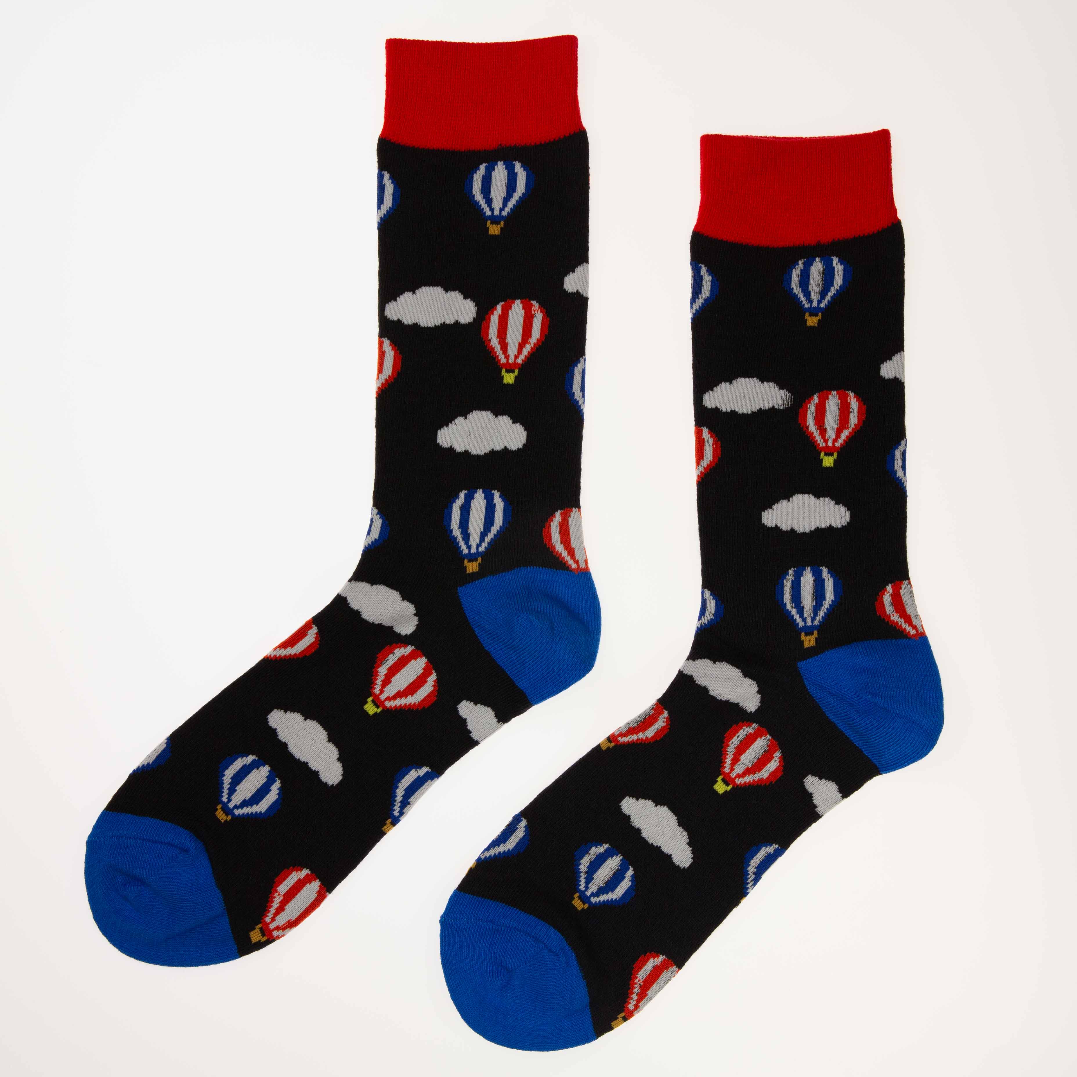 Svarte sokker med motiv av luftballong. Sokkene er myke og behagelige, og passer til enhver anledning.