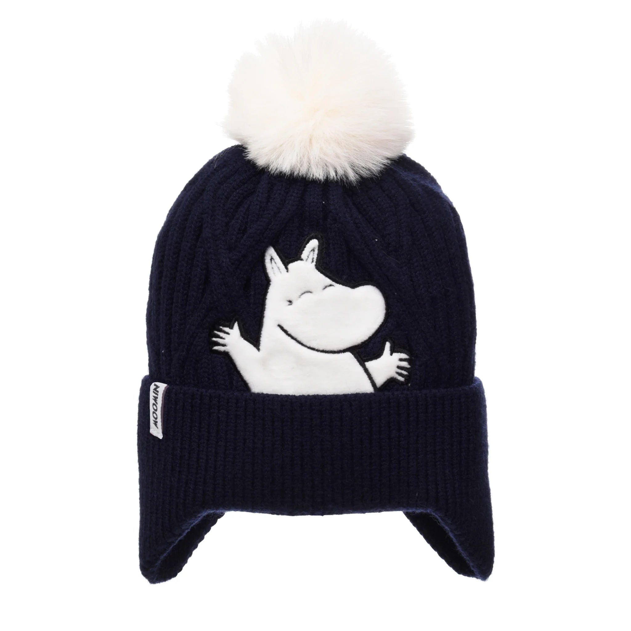 Denne mørkeblå Mummi-luen er ren vinterkos! Med et stort brodert Mummitroll foran og en fluffy hvit dusk på toppen får du en lue som både varmer og sprer godt humør. Den ribbestrikkede kanten og myke passformen gjør den perfekt for både tur, lek og hverdagschill.