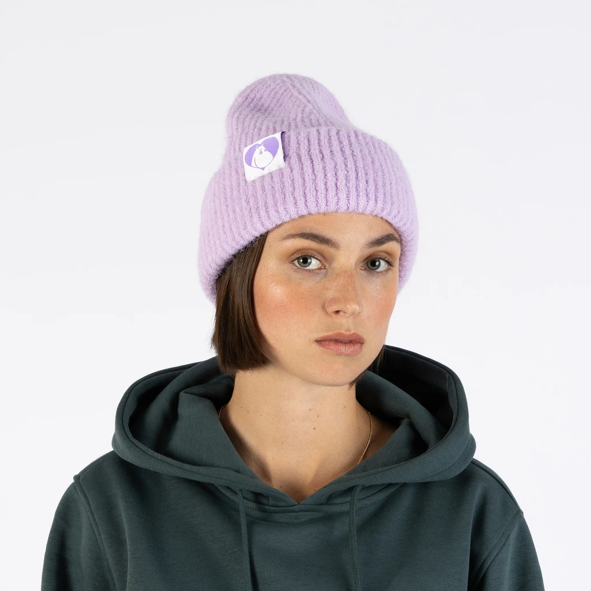 Lavendel + Mummitrollet = skikkelig søt kombo! Denne myke pastellfargede luen gir antrekket et friskt, lekkert løft – og holder deg varm hele sesongen.