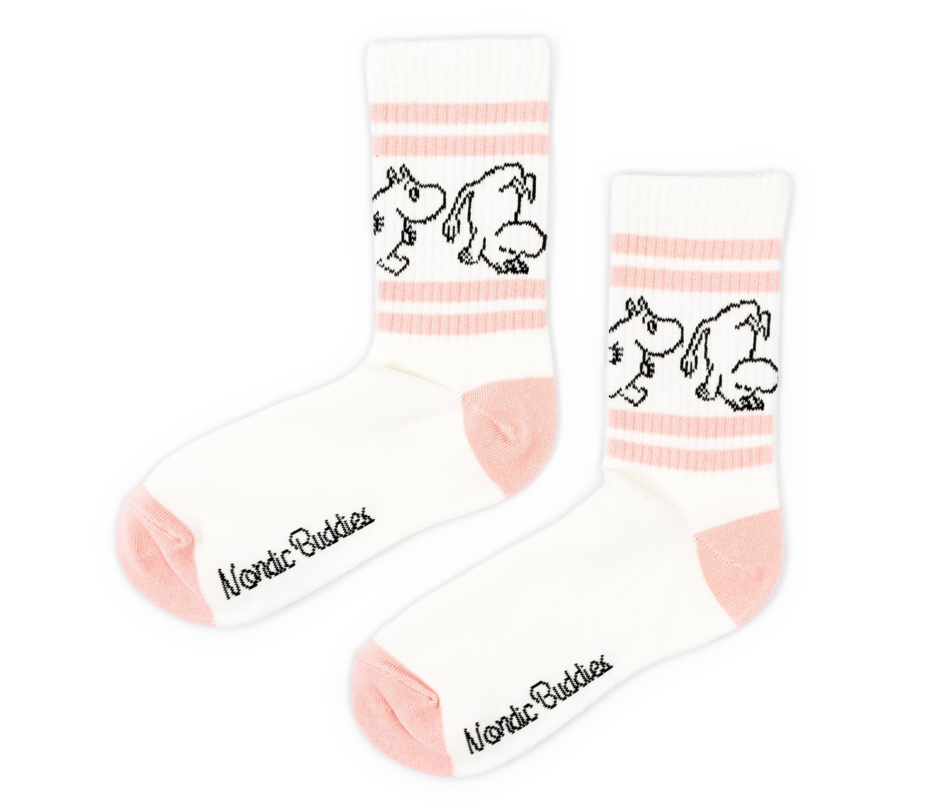 Hvite retro sokker med motiv av Mummitrollet. Fordi de er laget av et mykt materiale, er de både behagelige å ha på seg og et morsomt tillegg til enhver Moomin-fans garderobe. Et offisielt produkt fra Nordic Buddies – ideelle for alle som elsker Moomin-universet.