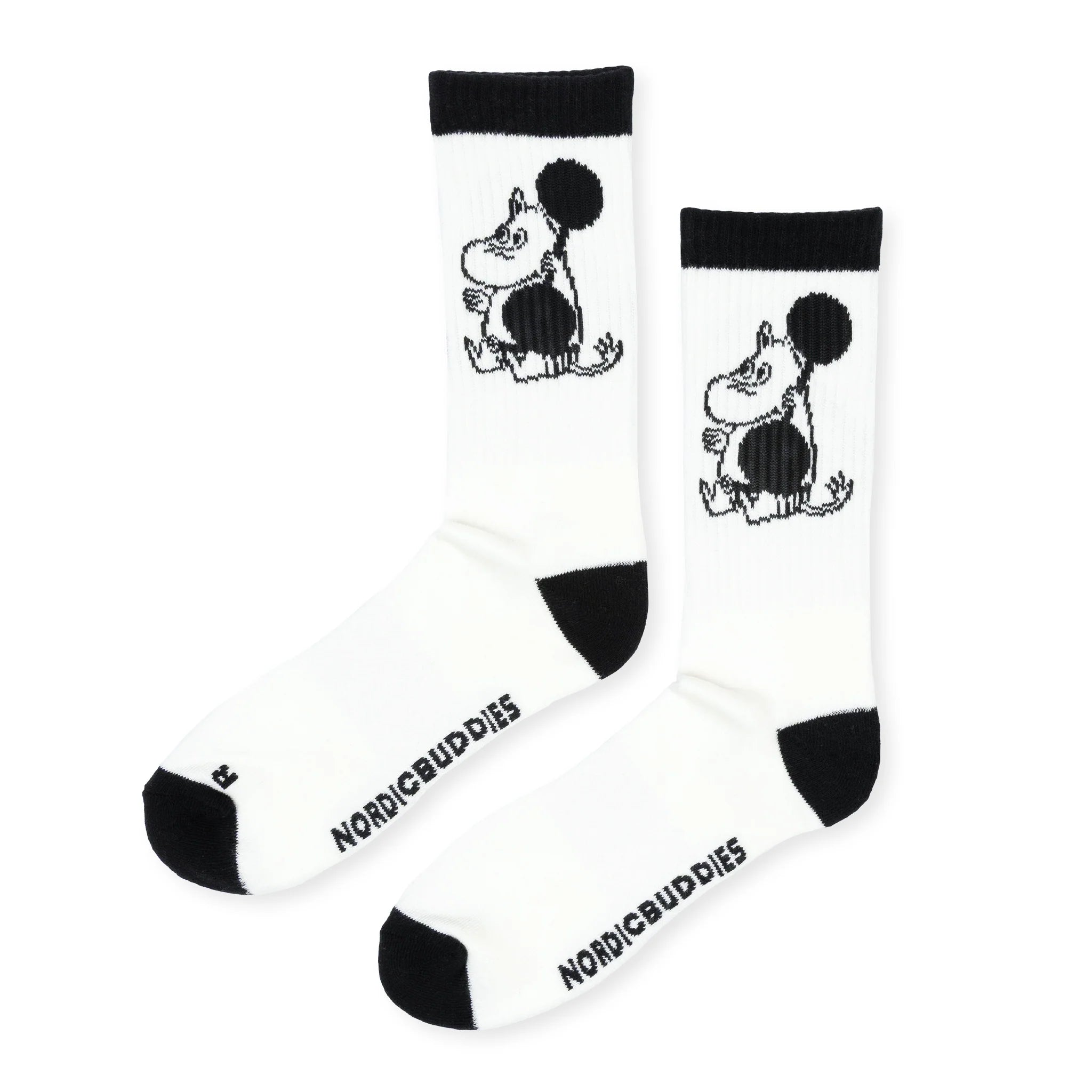 Når Mummitrollet går all in på treningsøkta, henger vi selvfølgelig med! 🏋️✨ Disse hvite og sorte treningsinspirerte Mummi-sokkene er perfekte for deg som vil kombinere komfort, stil og et snev av Mummi-motivasjon.