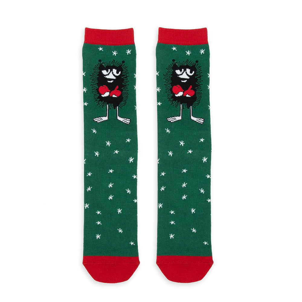 Grønne sokker med motiv av Stinky. Sokkene har rød detaljer på tuppen og øverst på kanten. Fordi de er laget av et mykt materiale, er de både behagelige å ha på seg og et morsomt tillegg til enhver Moomin-fans garderobe. Et offisielt produkt fra Nordic Buddies – ideelle for alle som elsker Moomin-universet.
