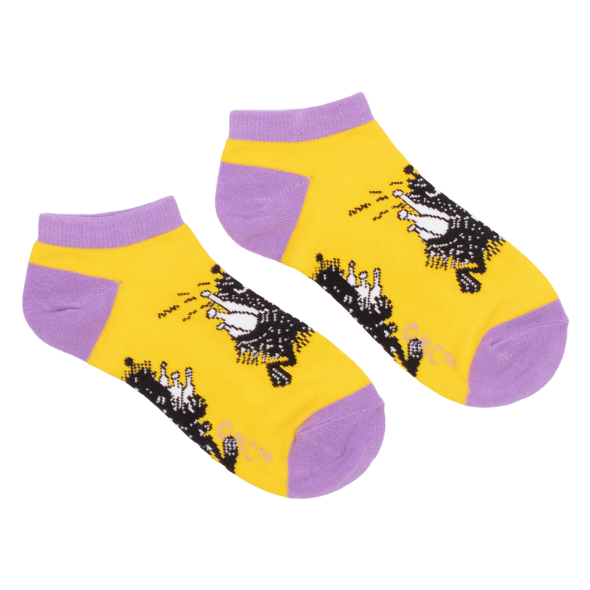Gule sokker med motiv av Stinky. Sokkene har lilla detaljer på tuppen, hælen, og toppen av sokken. De er laget av et mykt materiale, og er både behagelige å ha på seg og et morsomt tillegg til enhver Moomin-fans garderobe. Et offisielt produkt fra Nordic Buddies – ideelle for alle som elsker Moomin-universet.