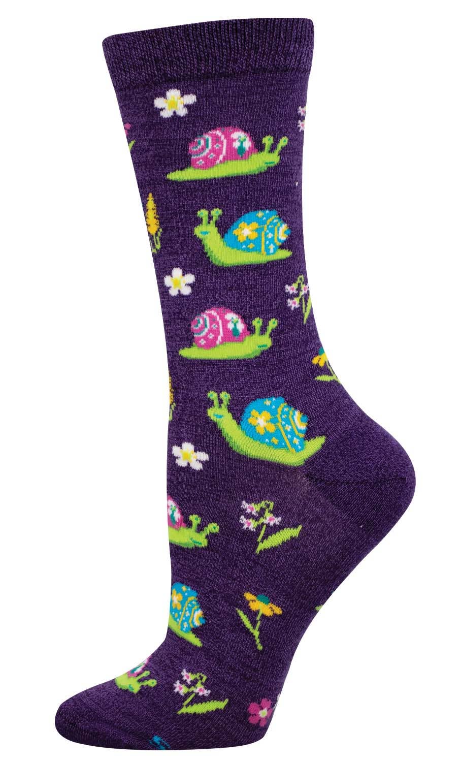 Noen ganger er det best å ta det heeelt med ro, og det kan du gjøre med stil! "Naturskjønn snegle" gir deg lilla sokker med fargerike snegler og blomster, perfekte for deg som liker å ta livet med et smil (og i sneglefart)