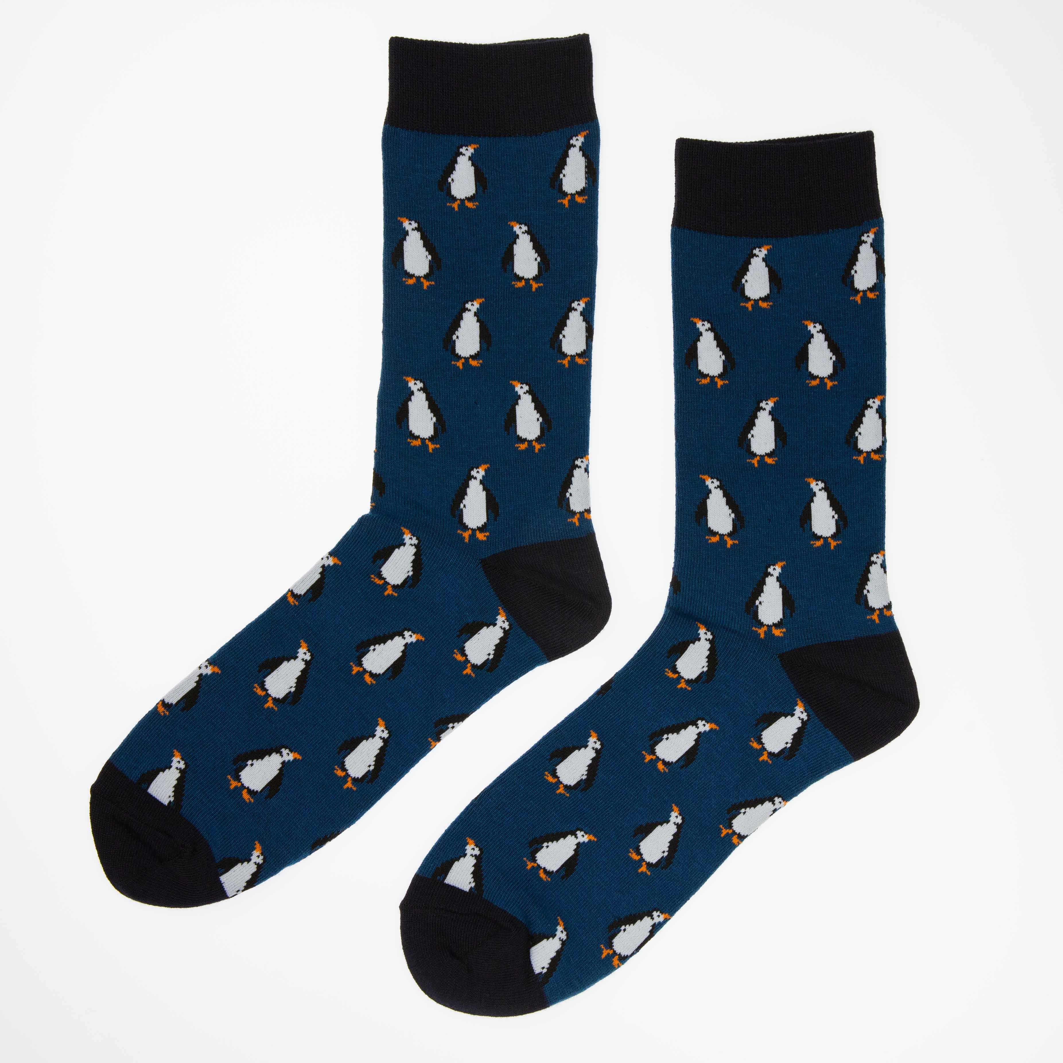 Hold føttene varme med disse sjarmerende blå og svarte sokkene prydet med lekne pingviner! Perfekt for dyreelskere og vinterentusiaster, disse myke og komfortable sokkene gir både stil og kos. Gjør hvert skritt litt mer pingvin-kult! ❄️🐧