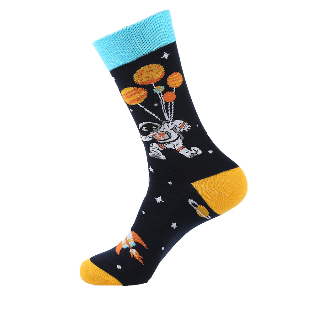 Svarte sokker med motiv av en astronaut i verdensrommet. Sokkene er myke og behagelige, og passer til enhver anledning.