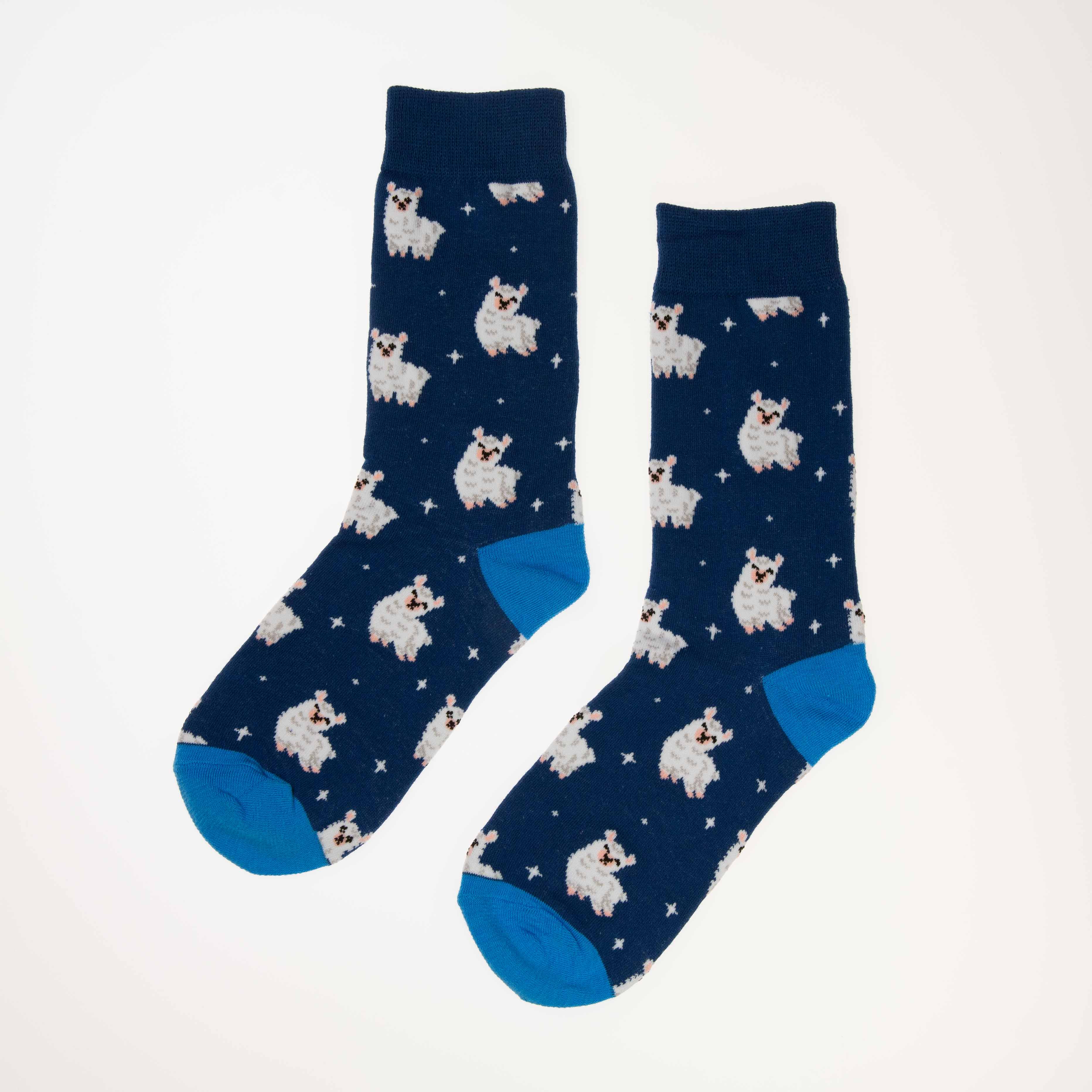 Spre litt koselig nattestemning med disse søte sokkene! Det lekne designet med små, fluffy sauer på en dyp blå bakgrunn gir en avslappende og morsom vri på antrekket ditt. Perfekt for late dager hjemme, søndagsmorgener eller når du bare vil ha et snev av drømmeland på føttene.