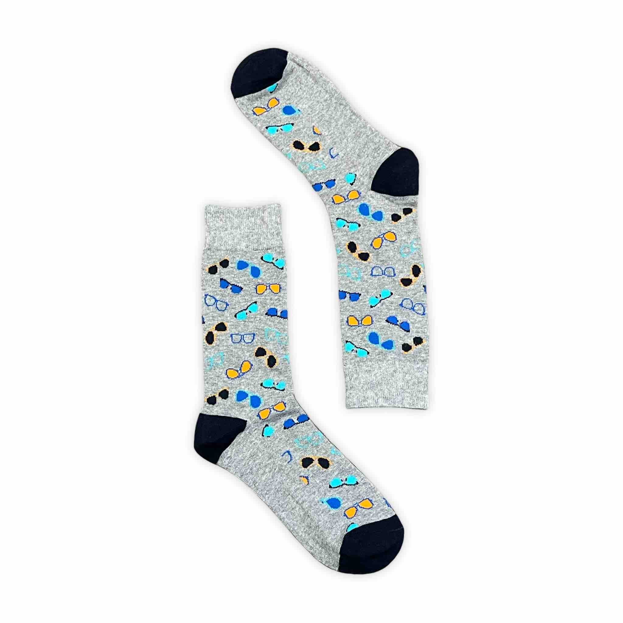 Lysegrå sokker med motiv av forskjellige solbriller. Sokkene er myke og behagelige, og passer til enhver anledning.