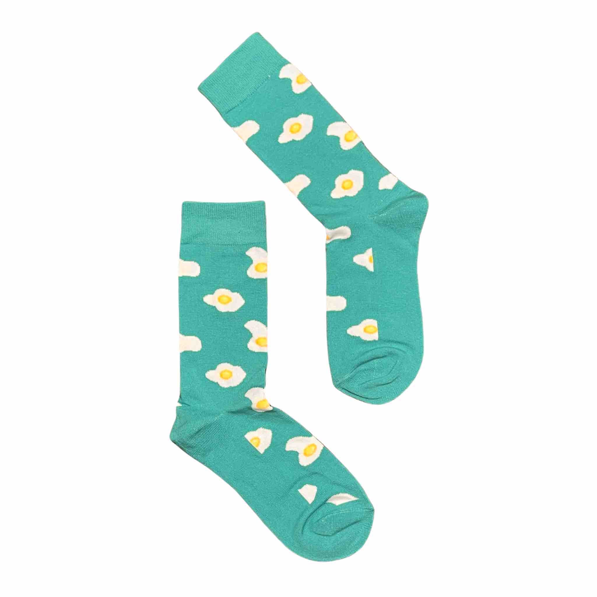 Turkise sokker med motiv av speilegg. Sokkene er myke og behagelige, og passer til enhver anledning.