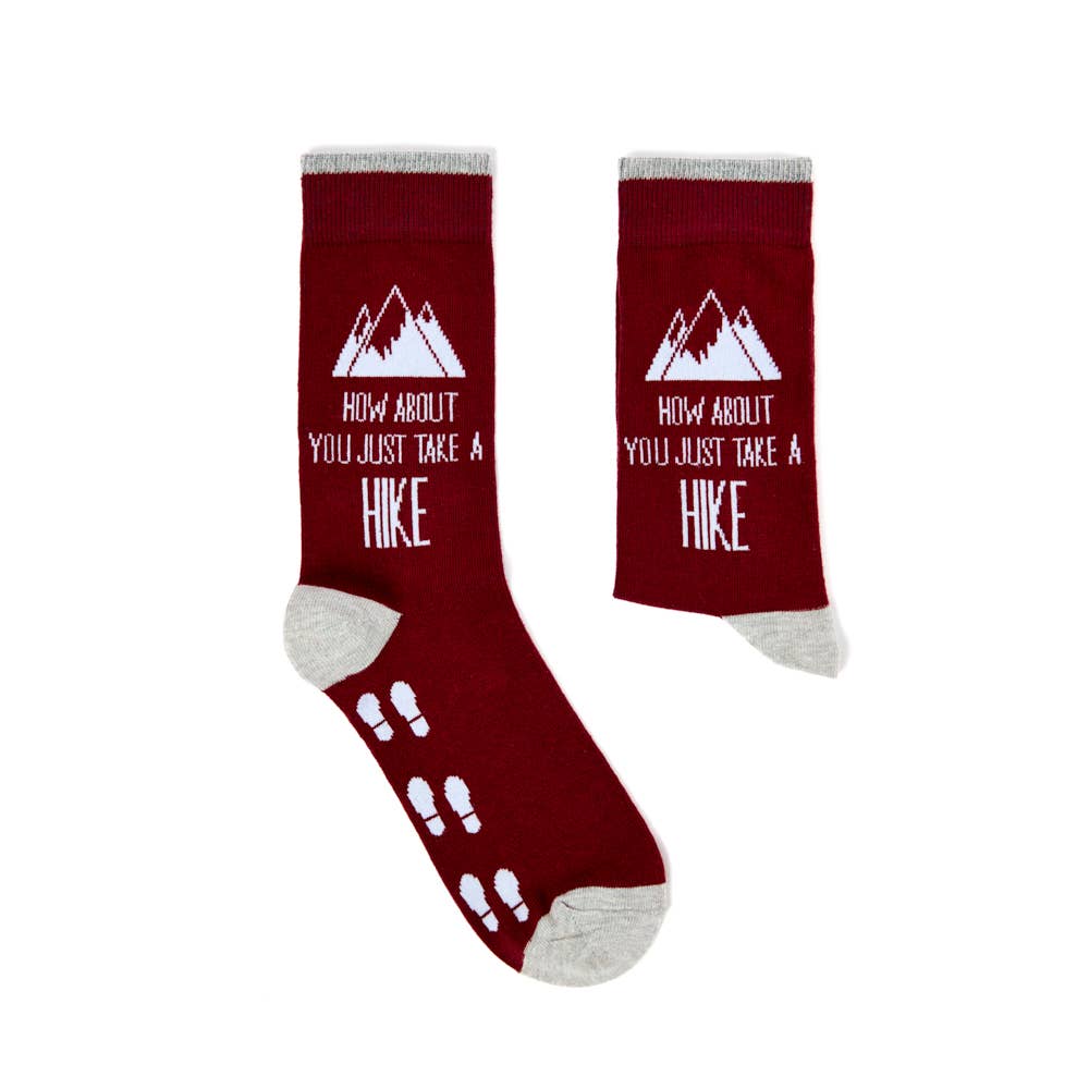 Si hei til en sokk som tør å skille seg ut – bokstavelig talt. Disse sokkene fra Urban Eccentric har et motiv av noen fjell og en tekst som får deg til å trekke på smilebåndet (hvis du forstår dobbeltbetydningen). Sokkene er burgunder med lysegrå detaljer ytterst på sokken, hælen og øverst på kanten.